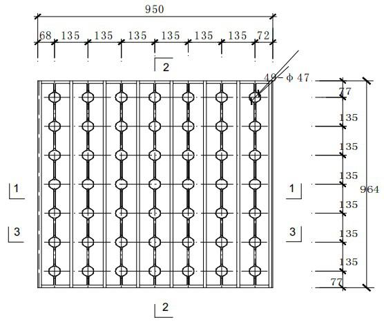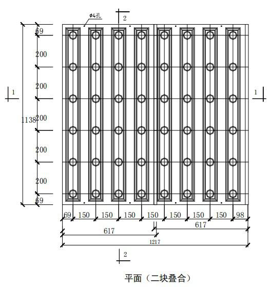 B型模板:?jiǎn)胃駷V池長(zhǎng)度應(yīng)為1.0m的倍數(shù),寬度為0.45m的倍數(shù),模板具體尺寸如圖: