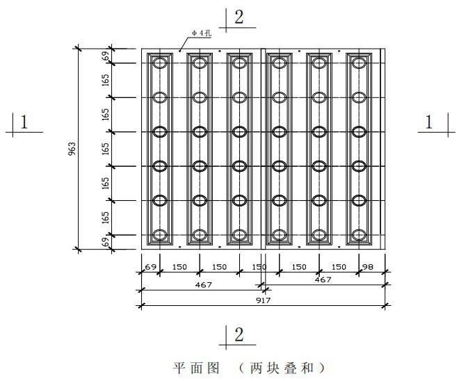 注:孔距尺寸為標(biāo)準(zhǔn)尺寸,必要時可根據(jù)濾池設(shè)計要求,采用特殊模板確定。